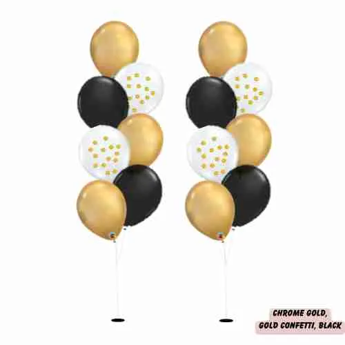1) Balloons come with helium and silver strings. Balloons and colours will be tied according to sample photo.