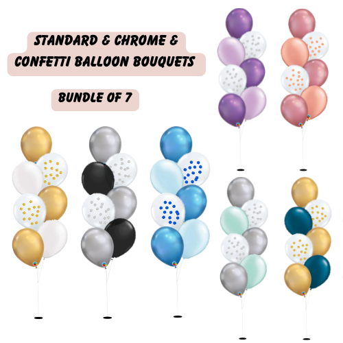 • Price is for ONE bundle of 7 balloons (3 pc Chrome balloons + 2 pcs Standard balloons + 2 pcs Confetti balloons)