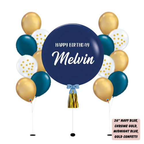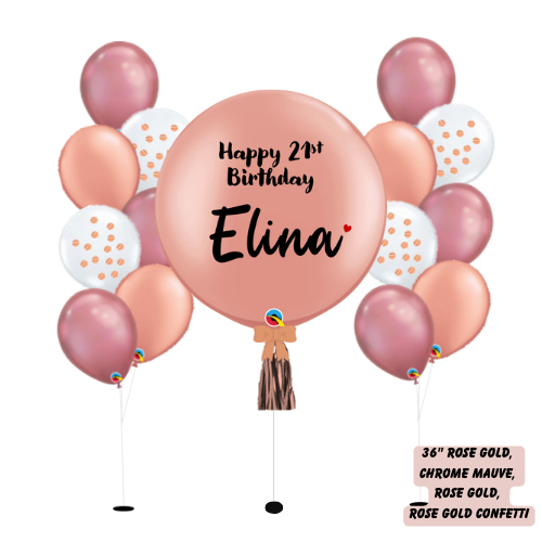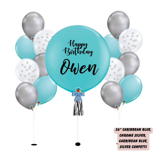 Chrome&Confetti Balloon Bouquets – with 36″ Personalised Latex Balloon