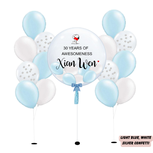 3) The customisation is of decal vinyl material. As the bubble balloon shrinks overtime, there will be creases/bubbles on the wordings which is a fairly normal occurrence. Please note customisation is single-sided only.