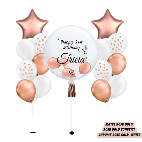 3) The customisation is of decal vinyl material. As the bubble balloon shrinks overtime, there will be creases/bubbles on the wordings which is a fairly normal occurrence. Please note customisation is single-sided only.