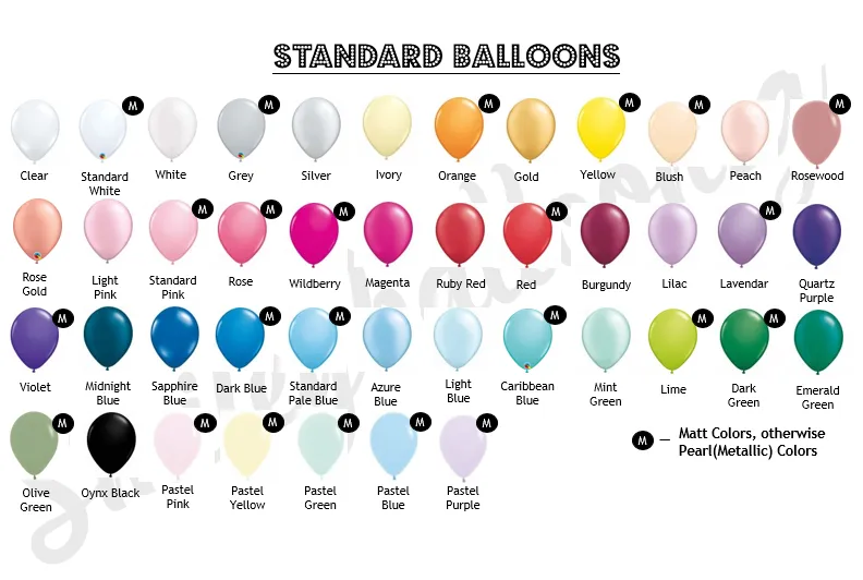 7) Please note that the photos of balloon colors may appear slightly differently in real life compared to our website photos. This could be due to screen restrictions, photo lightings and/or photo resolution differences.